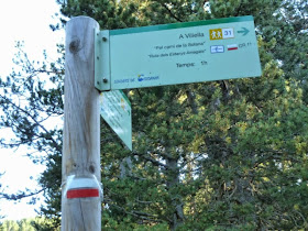 Just abans d'arribar al Pla de Vallcivera, trobo la desviació que ens portaria cap a la Portella Blanca d'Andorra (2521m), punt fronterer entre Catalunya, França i Andorra